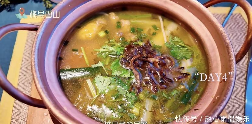童瑶和富豪老公的行程不算紧凑,饮食也都是跟着当地习俗来,中午的时候一般都是简餐,最常见的就是吃一碗云南米线。