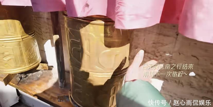最后童瑶跟着人群去转经筒,在藏地文化里,转经筒早已和“平安、顺遂、祈福”绑定,普通人转动它,就像是祈愿、祈福一样。为自己和家人求平安健康、生活顺利,也能感受当地的文化特色,融入到民众中去。一个缓慢重复且无需思考的动作,更多时候可以让心灵得到放松。