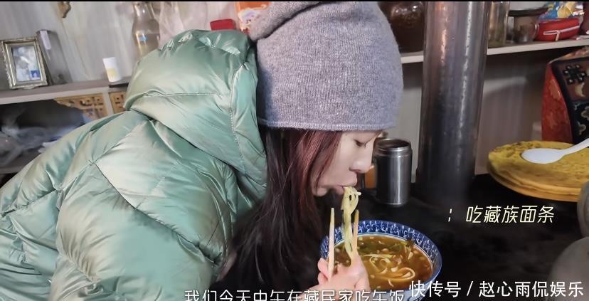 童瑶和老公,不仅可以吃漂亮饭也能到藏民家里入乡随俗。跟着藏民一起吃藏族面条,童瑶也是一脸满足。